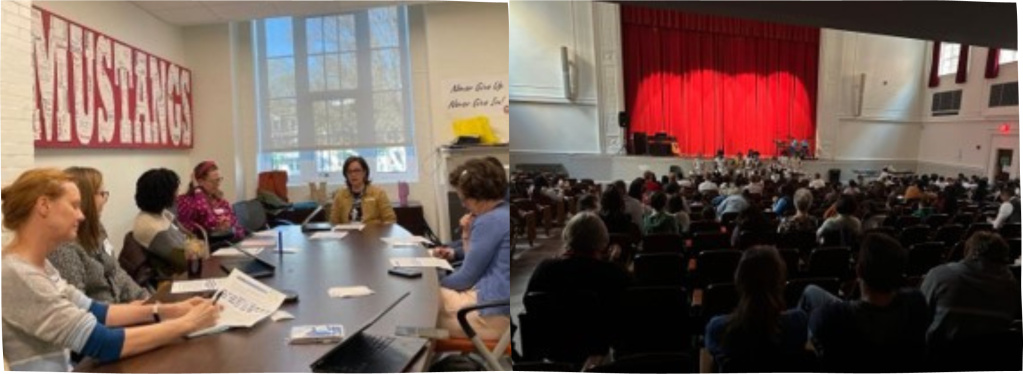 On May 6, a group visited Eliot-Hine MS to learn about how they build school culture. Attendees joined grade 6 and 7 advisory classes, a social-emotional learning strategy in which small groups meet weekly to explore discussion questions and activities. In addition, DCPS Coordinator of Middle School CTE Amber Terry joined the group to share an overview of the current CTE (Career and Technical Education) offerings at DCPS middle schools.