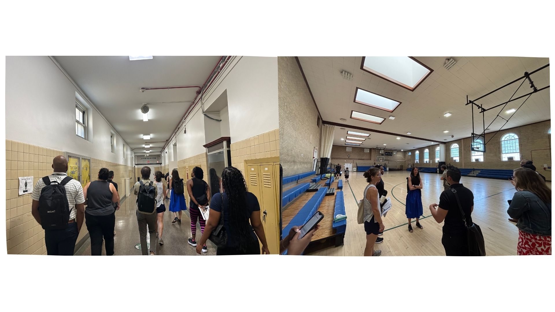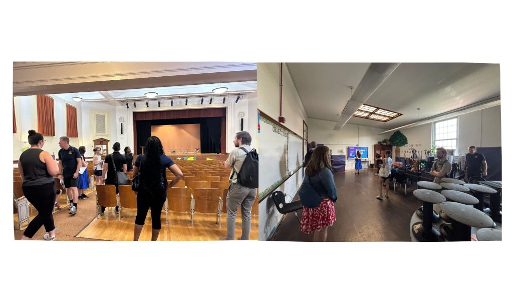 During the walk, members of the CWG got a chance to visit the classrooms, auditorium, cafeteria, and gymnasium, and learn about the different spaces in the building. They also discussed the building’s modernization and educational specifications with the design-build team. The site visits will help in informing the CWG members’ feedback on the building’s design concepts that will be reviewed in the fall meetings.